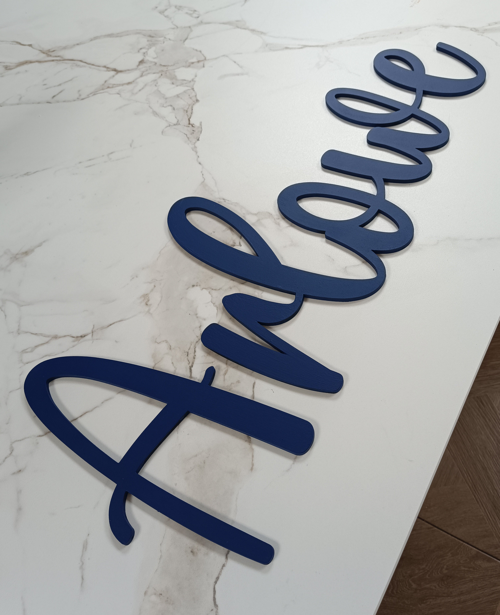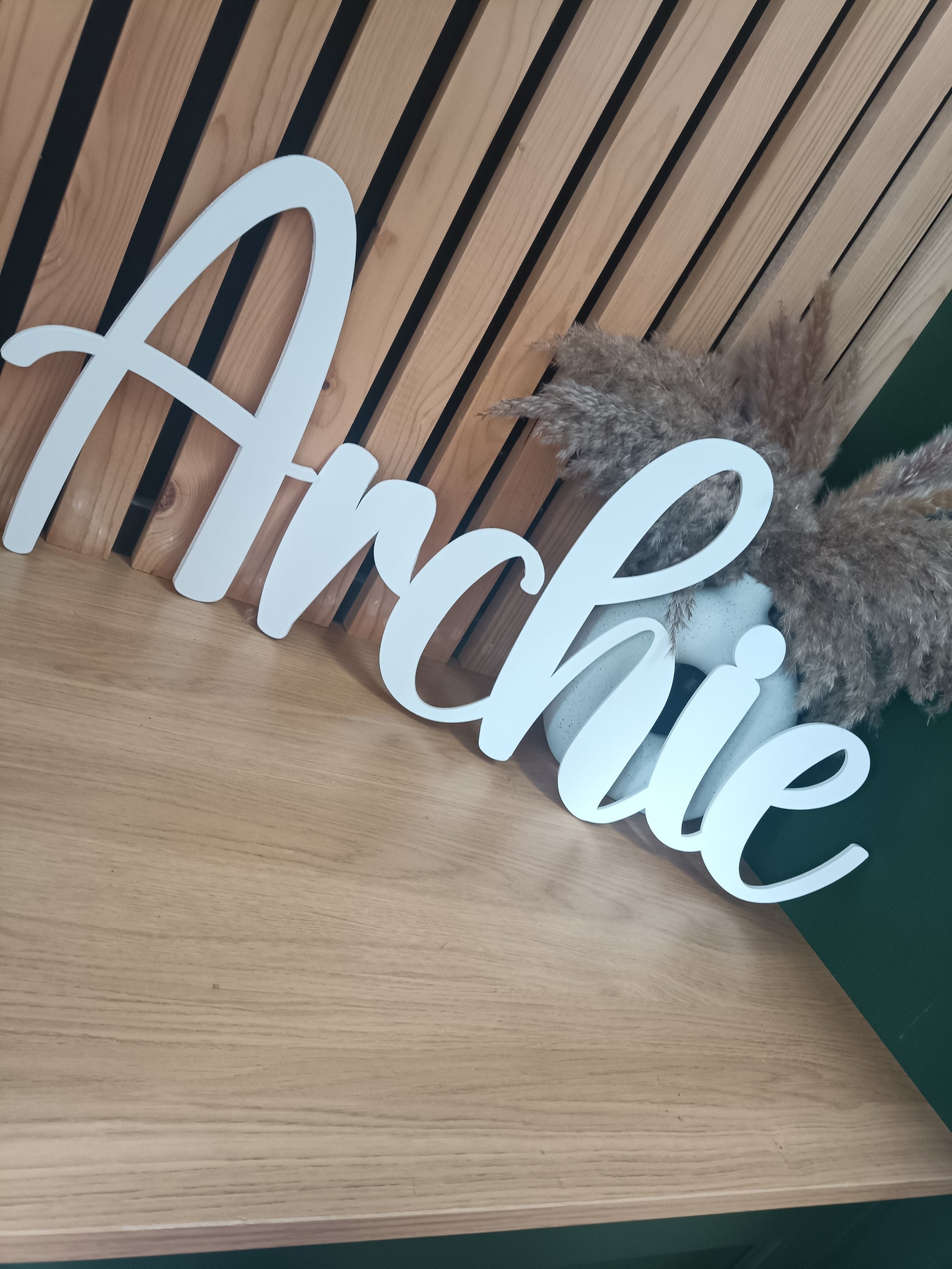 An adorable wall name that would be perfect for any child's bedroom or playroom. Lots of colours available to choose from. They are available in three sizes, 60cm wide, 75cm wide or 95cm wide. The height of each name will vary. You can choose to order the name alone or add stars, hot air balloons, dinosaurs, butterflies or hearts to the design.